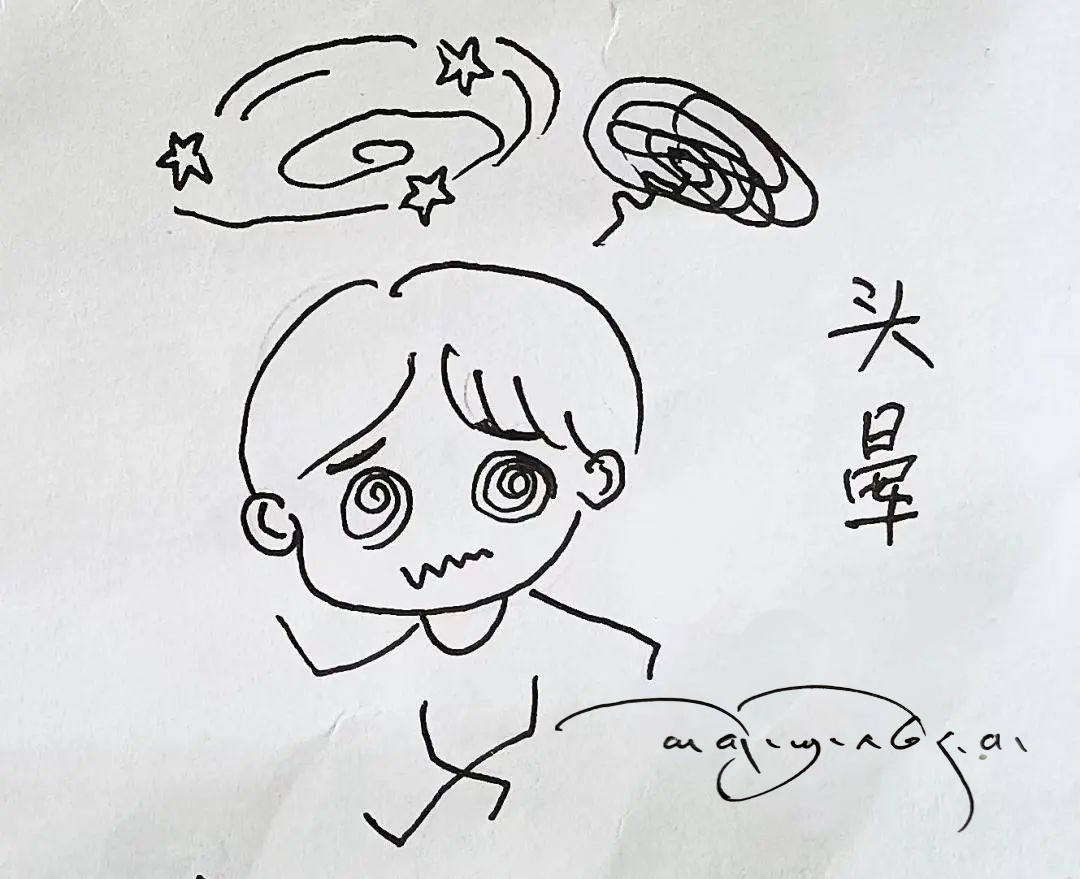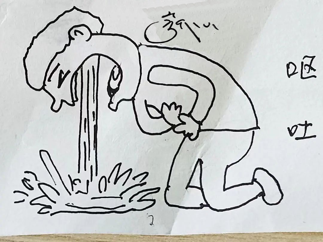 为了解决这一沟通困境,从小喜欢画画的林茵想到了“看图说话”。表情痛苦,脑袋上星星萦绕,天旋地转,这是林茵笔下的“头晕”症状;难受得跪在地上,张大嘴巴吐了一地,这是林茵想确认的是否有“呕吐”症状。