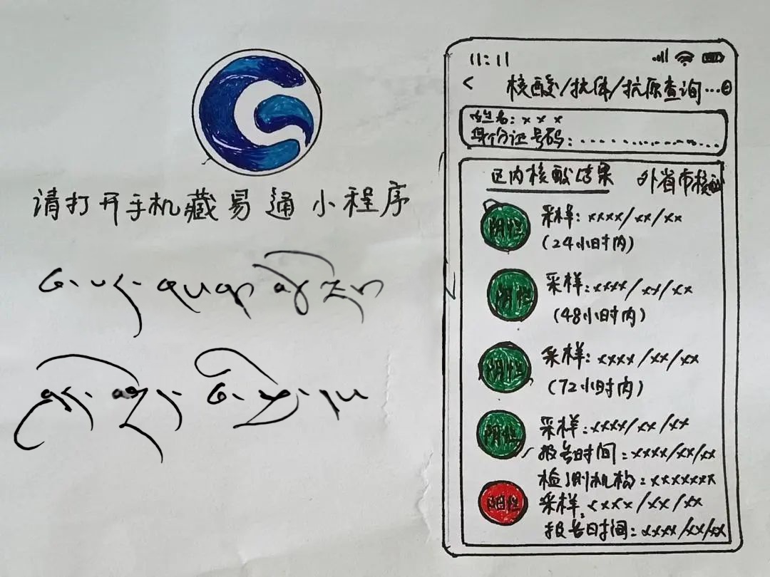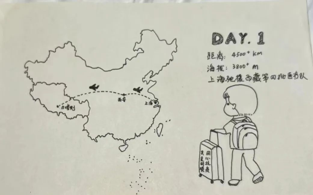 试了两天,这样的沟通也缓解了不少当地居民的焦虑,借助手绘,他们也能“听懂”医生问的话了。原来林茵的手绘只有图,在当地志愿者的帮助下,林茵的手绘1.0版有了藏语标注,“双语”手绘2.0版也更清晰明了,“沟通起来顺畅多了。”