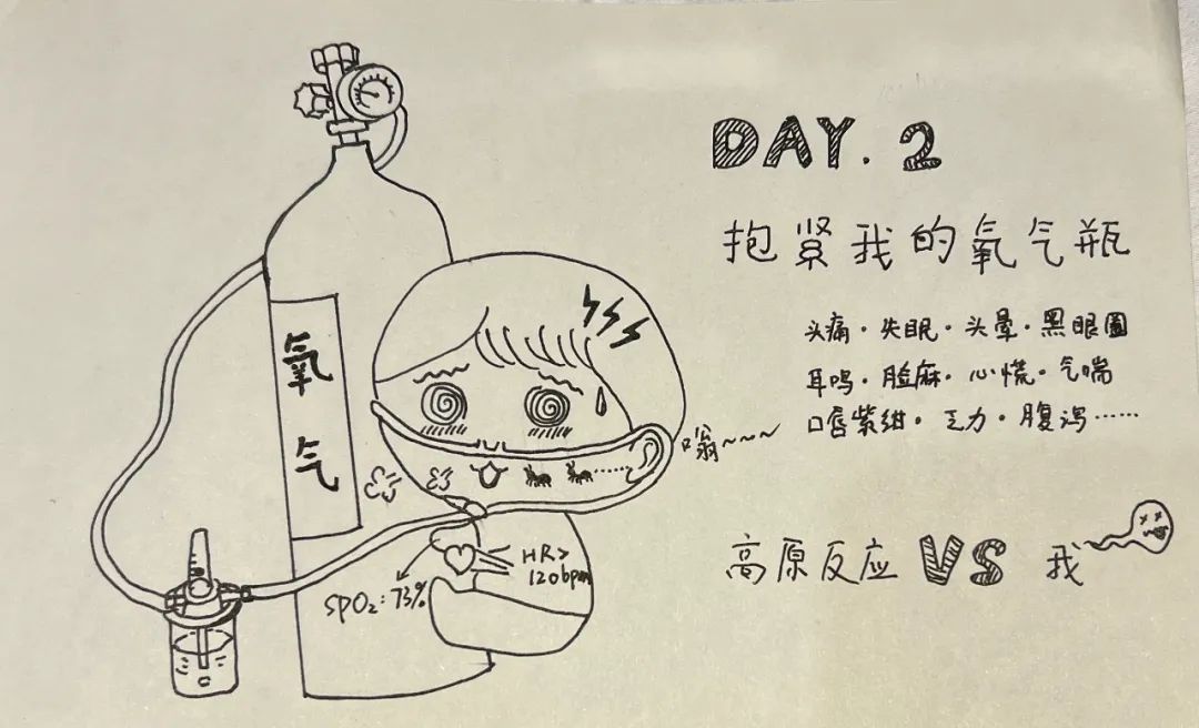 条件的艰苦,在林茵“萌萌”的画风之下似乎稀释了几分。回忆来到日喀则的第二天,一个小小的女孩紧紧地抱在一个大大的氧气瓶上,似乎谁也别想拉开她们,画风很可爱,也很让人心疼。