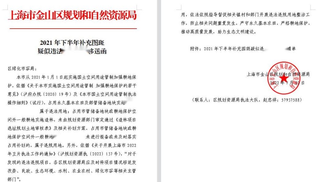 金山区规划资源局通过“三个落实”工作举措,加强督导检查,进一步压实属地政府耕地保护主体责任,扎实、有力推进违法用地整治。