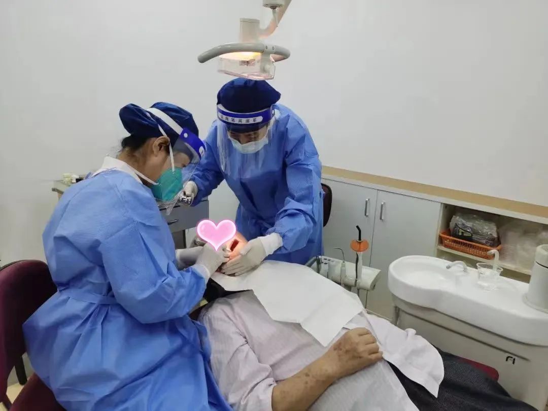 上午10点,陈老伯在家人的陪伴下,来到虹桥街道社区卫生服务中心口腔科。