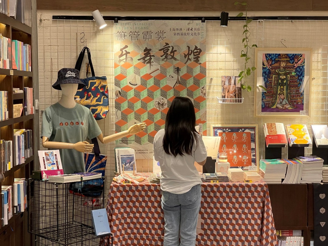 读者书店第四届敦煌文化节近日开启,以“箫管霓裳,乐舞敦煌”为主题,通过活动、文创、展览三大版块,在外滩共话敦煌,带读者走进敦煌乐舞共同谱写的曼妙华章。徜徉店内,《胡乐的传来及其历史迹象》《唐代莫高窟壁画音乐图像研究》《飞翔的精灵》《萧管霓裳——敦煌乐舞》《乐舞敦煌》《敦煌乐舞线描集》《敦煌乐舞》《飞天花雨下的佛陀微笑》《绿洲上的乐舞》《写给青少年的敦煌故事》丛书等,汇成了一份诚意满满的年度敦煌主题书单,从不同维度展现敦煌博大精深文化,吸引不少读者驻足选购。