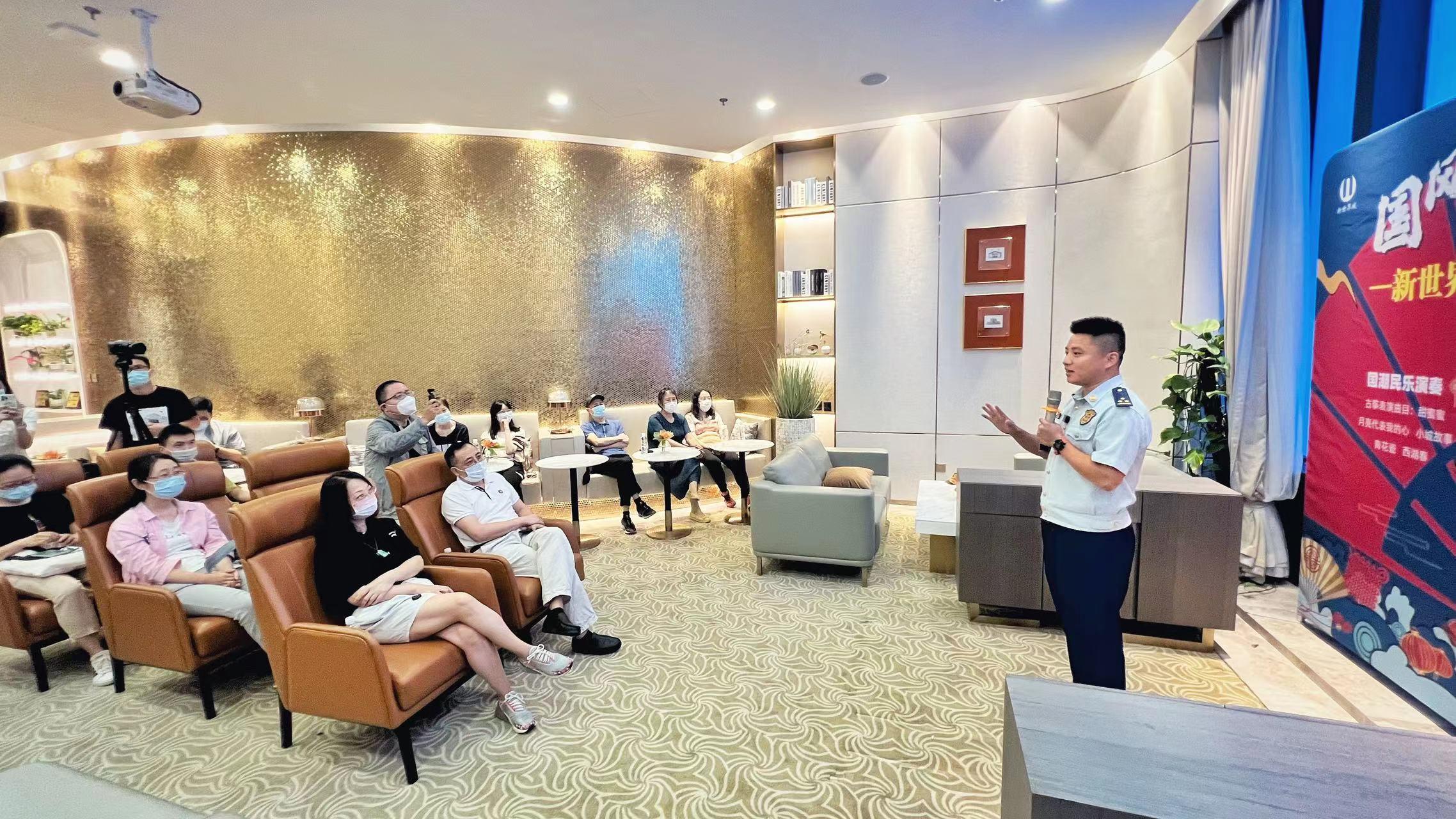 穿着一身“火焰蓝”制服的陆超和丁佳俊一上台,瞬间吸引了大家关注的目光。在他们妙语连珠、幽默诙谐的一顿“输出”下,台下观众笑声连连、掌声不断。从消防员的日常生活,到火灾防范要点,从个人灭火救援的经历,到市民逛商场的安全须知,一个又一个的段子,将消防知识用生动、接地气的方式表述出来,让大家在活泼轻松的氛围里,潜移默化地吸收。