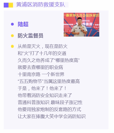 暑去秋来、金九银十,“五五购物节”期间,以“中华第一街”美誉的南京路步行街为代表的商圈,吸引了无数市民群众前往购物、娱乐。消防员们也将此处作为“投放”消防知识、宣传平安文化的主阵地。上周末,黄浦消防指战员陆超、丁佳俊来到了位于南京路步行街的新世界商城,给前来参加商场活动的市民群众带来一场特殊的消防安全知识讲座。这也是消防安全科普以脱口秀形式“进行业”的2.0版本——消防安全“进商场”。
