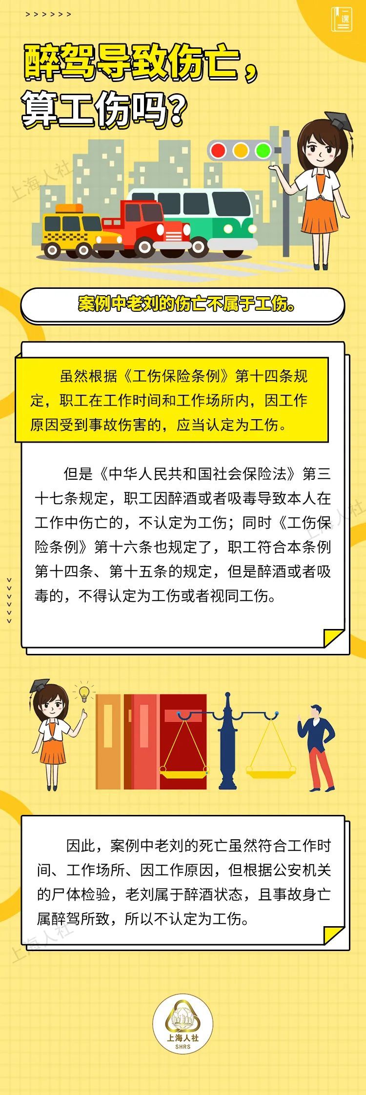 老刘是一家物流公司的送货员。他根据工作安排前往公司取货,开车途中直接撞上了交通信号灯灯柱,当场身亡。后经尸检后确认老刘每100ml血液酒精含量为175mg,属于醉酒。但老刘是因工作原因死于工作时间,粒粒博士,他是否可以认定为工伤呢?