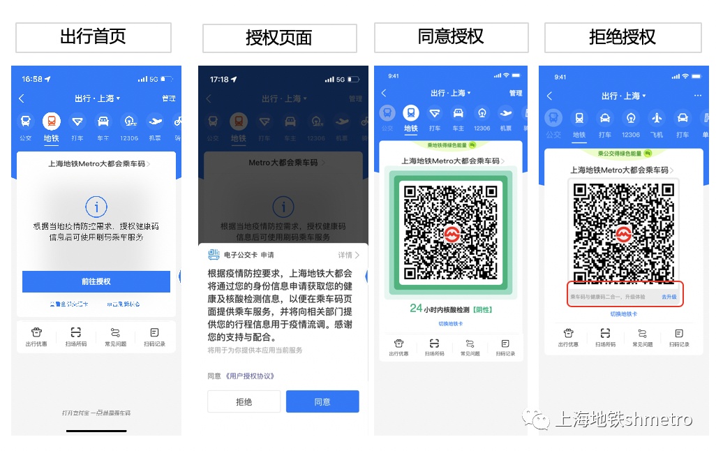 (2)上海地铁“Metro大都会”乘车码授权健康信息