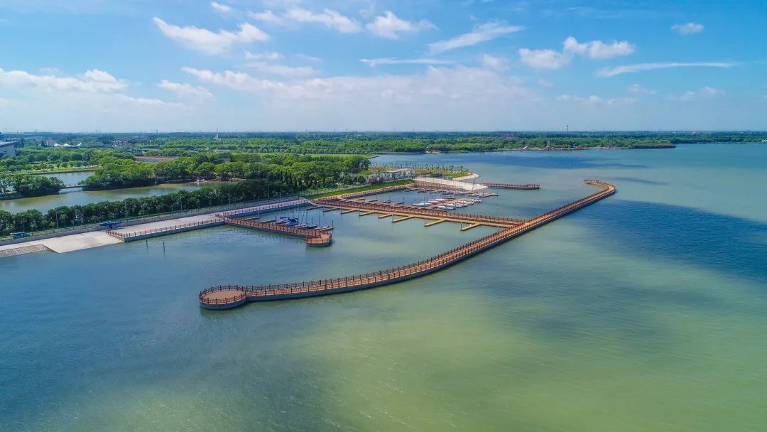 三是实施岸线开放,新建环湖大堤,一方面可以作为防洪通道保证防汛安全,同时又具备部分城市道路的功能;在无法环湖贯通的江苏飞地别墅岸段,新建跨湖大桥连接防洪堤防及生态湿地,增强生态湿地的可达性,充分发挥生态湿地的景观功能,营造一个良好的亲水环境,突出淀山湖新城的“湖景”特色。
