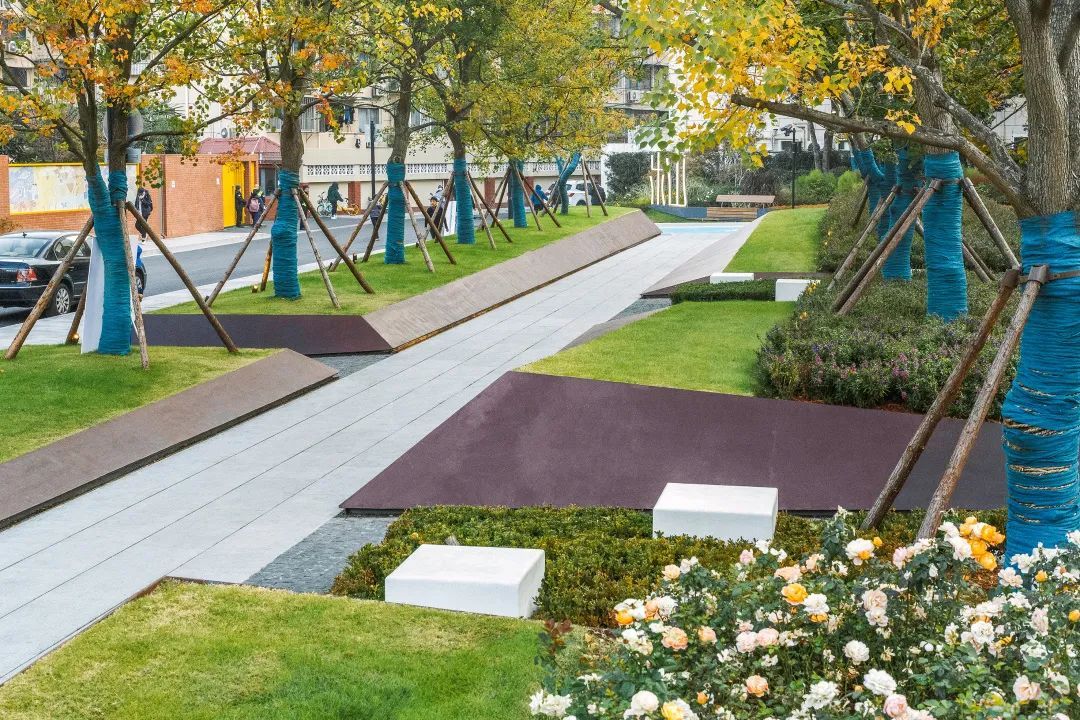 绿地与道路空间的边界融合,创造良好的步行环境。