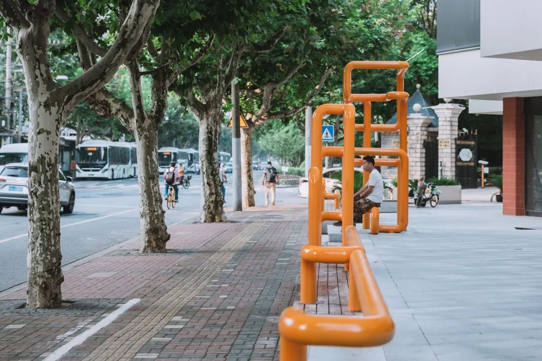 在广元西路一侧的口袋广场边,设计团队与艺术家共同创作了一组名为“乐山”的公共艺术装置。这组作品巧妙地将“乐山”两字设计成可与行人互动的城市家具,在驻足停留中增添了一份乐趣。