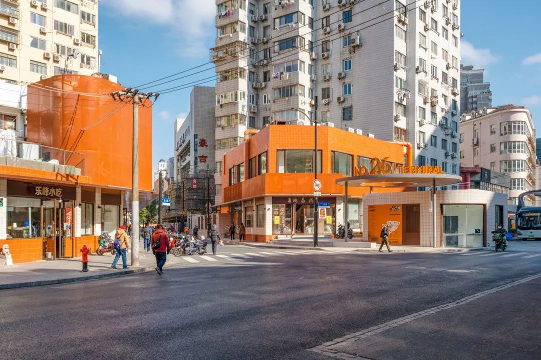 改造方案的关注点在于创造一个更宽敞、明亮且能延续服务功能的车站。不只是改变了站台本身,而是把车站周边环境整体做了调整与提升。车站的入口树立起了“No.26 terminal”的一组字,就像乐山社区新点亮的眼睛,鲜艳的橙色代表了社区的自信,也向外传递出更开放、阳光的社区精神。