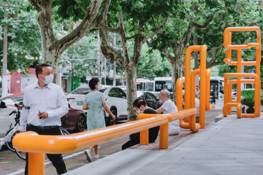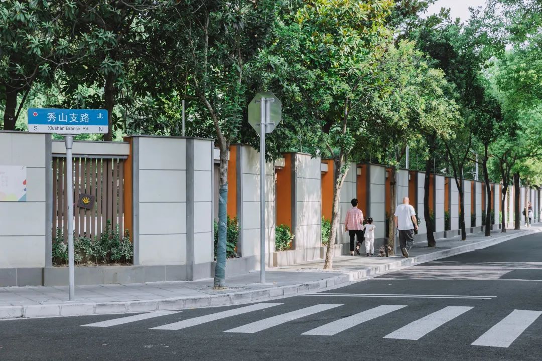 改造后的乐山路秀山路街角,围墙形态消减了乱停车,提供了更多可停留与交流的空间。