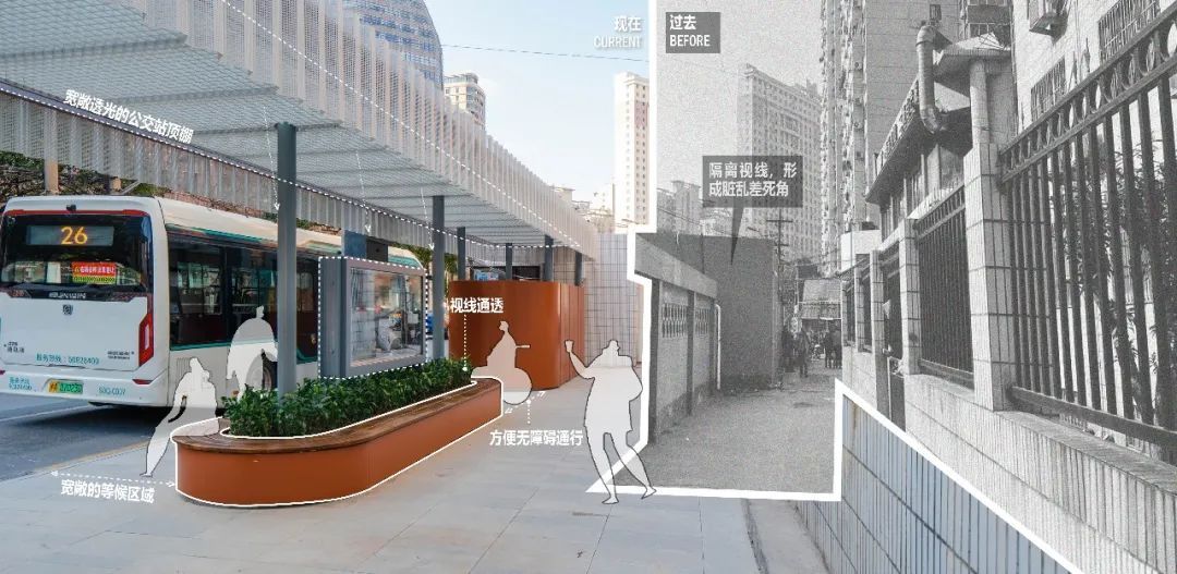 “如果把车站作为社区更新的示范型地标来打造,是否能树立新的形象面貌?”这个想法得到街道与巴士集团的支持,在方案深化过程中,巴士集团的工作人员多次分析讲解车站需要的功能要求。