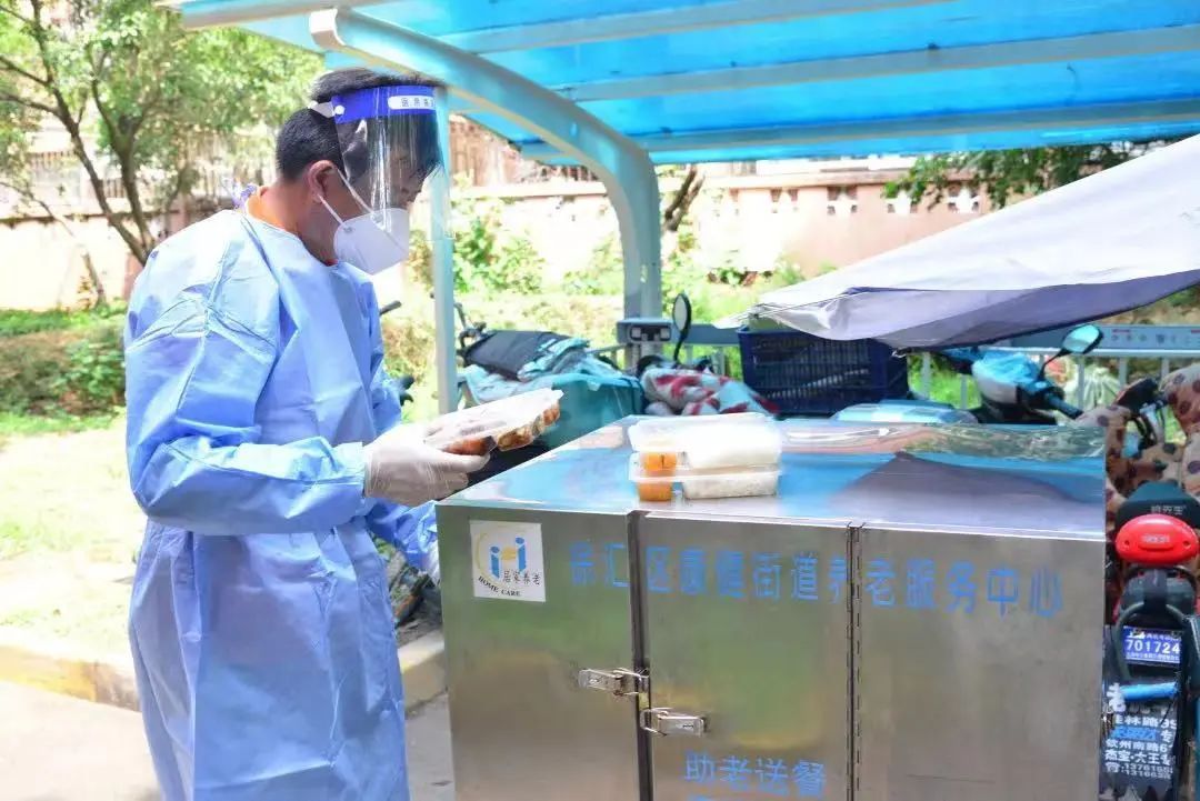 为了不断扩大老年人助餐的服务半径,社区食堂还坚持把“为老助餐”送到家门口,截至目前,康健街道近四百位老年人申请了送餐服务。每天上午,社区食堂都会将一份份打包好的热饭热菜放进保温箱,通过送餐车,将这些饭菜有序送到每位取餐老人手中。