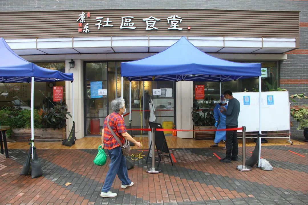 扫描场所码,出示72小时内核酸报告……一到饭点,坐落在虹漕南路的康乐社区食堂就开始热闹起来。不少老人早早来到这里,测温、扫描“场所码”,等待“开餐”。