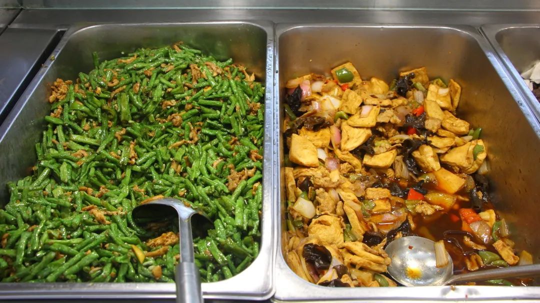 走进社区食堂,阵阵饭香扑鼻而来。清蒸鲈鱼、本帮烧肉、清炒虾仁、清炒杭白菜、山药木耳肉片……十多道精心烹制的菜肴摆放整齐,供就餐的居民挑选。