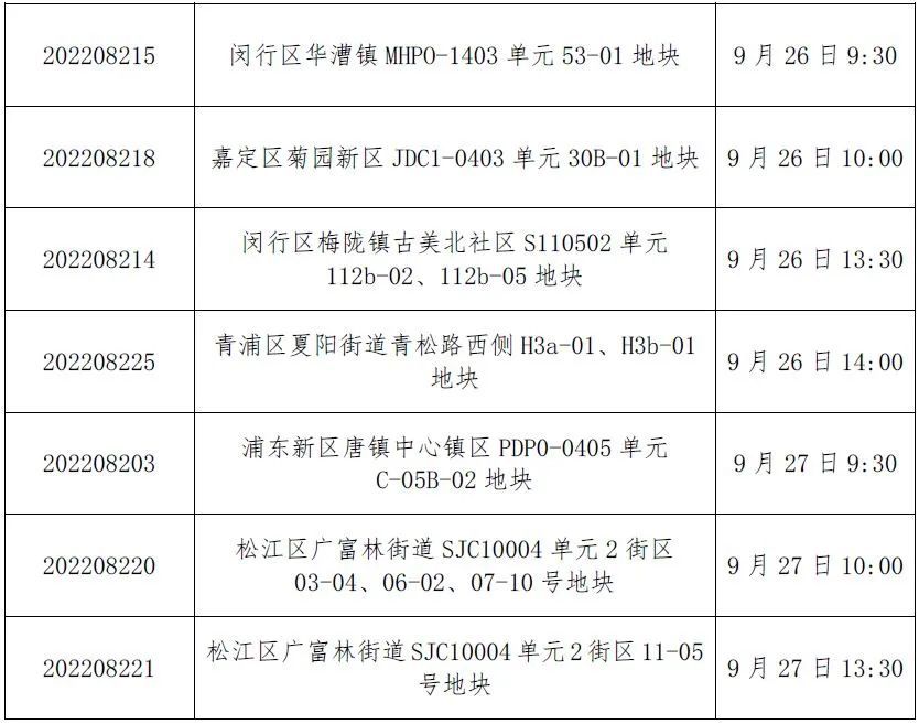 根据《上海市国有建设用地使用权出让沪告字[2022]第082号公告》的规定,按照本市疫情防控有关要求,现确定上海市国有建设用地使用权出让沪告字[2022]第082号公告现场交易活动安排如下: