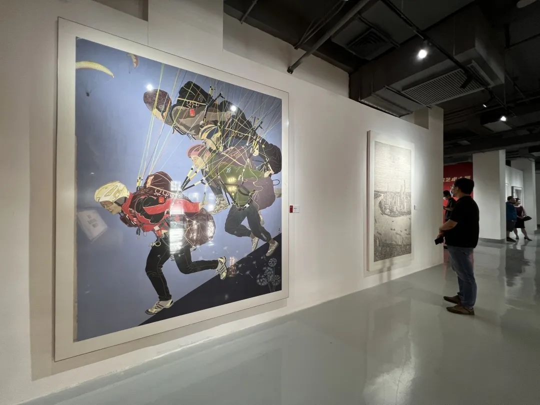 上海的变迁,总是生活在这里的人感受最深。展出作品中,不少来自普通市民的细微日常,点滴体悟。这幅《翱翔的青春》,就是作者马婕在一次出门散心时偶然捕捉的场景。线条流畅,色彩鲜活,蓬勃朝气扑面而来。