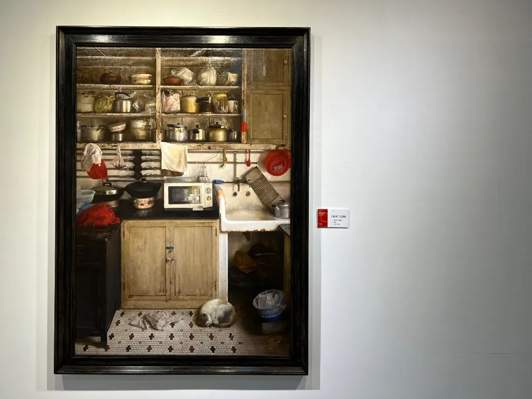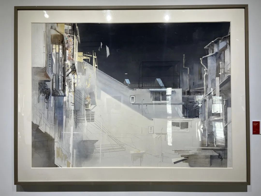相信很多上海人的童年,是在阁楼上度过的。看到这幅《再见·带阁楼的房子》,仿佛梦回上世纪五六十年代。这是一个深夜,一侧是灰暗老楼,设施陈旧,空间逼仄;一侧是窗台灯火,温暖明亮,象征着城市的新陈代谢。很快,这儿的居民将随着旧区改造,迎来新生活。