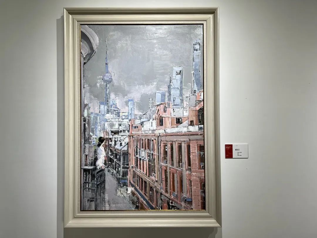 如果说阁楼代表着过去的上海,那么摩天大楼则更能让人想到日新月异的魔都。作品《看东方》中,顺着画中少女的视线望去,陆家嘴“四件套”正在熠熠生辉,时代乐章已经奏响。