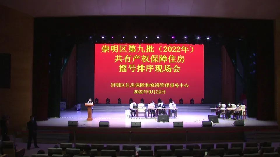 9月22日,崇明区第九批(2022年)共有产权保障住房摇号排序现场会在风瀛洲剧场举行,共有38户申请家庭代表参加了摇号。现场会上,另有专业公证人员以及第三方代表进行操作监督,摇号结果也在第一时间现场公布。