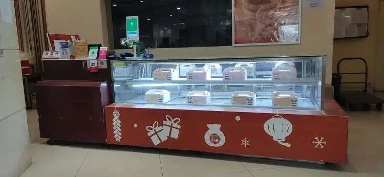 顺义路店面积不大,所售商品能基本摆满整个货架,冰柜内有蛋糕、蛋挞等售卖。