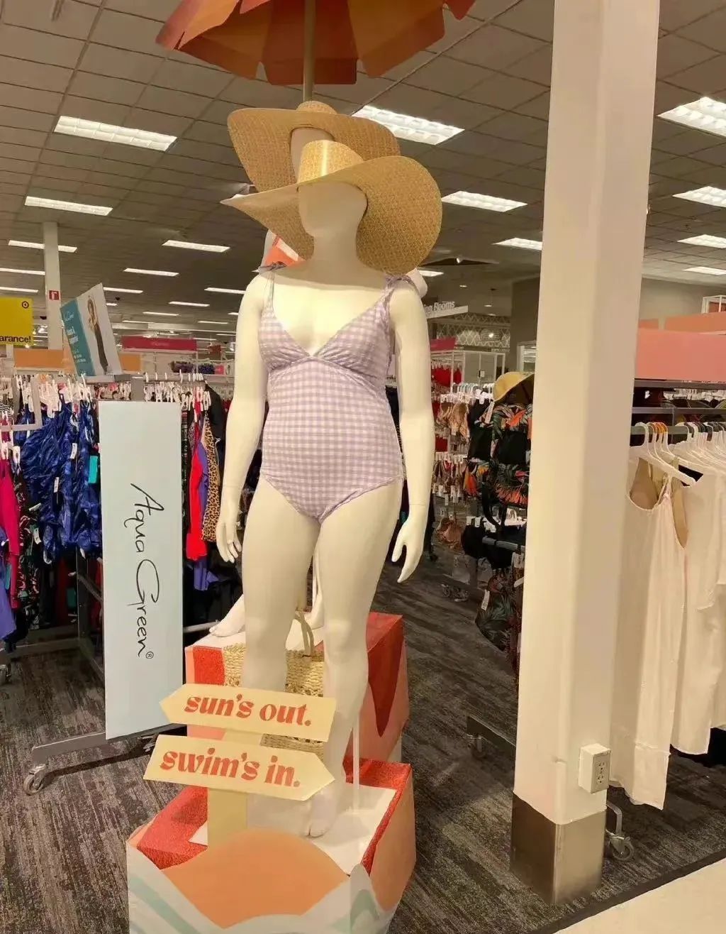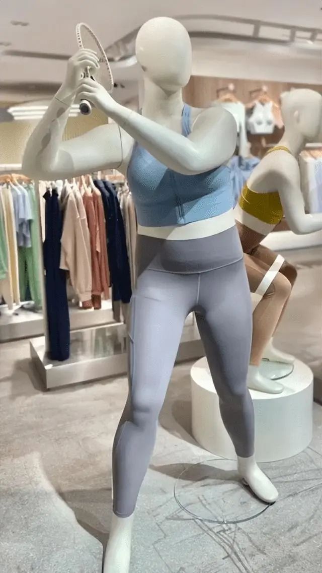 近日,上海的朱女士在商场逛街时看到一家运动女装店的模特极具冲击力: