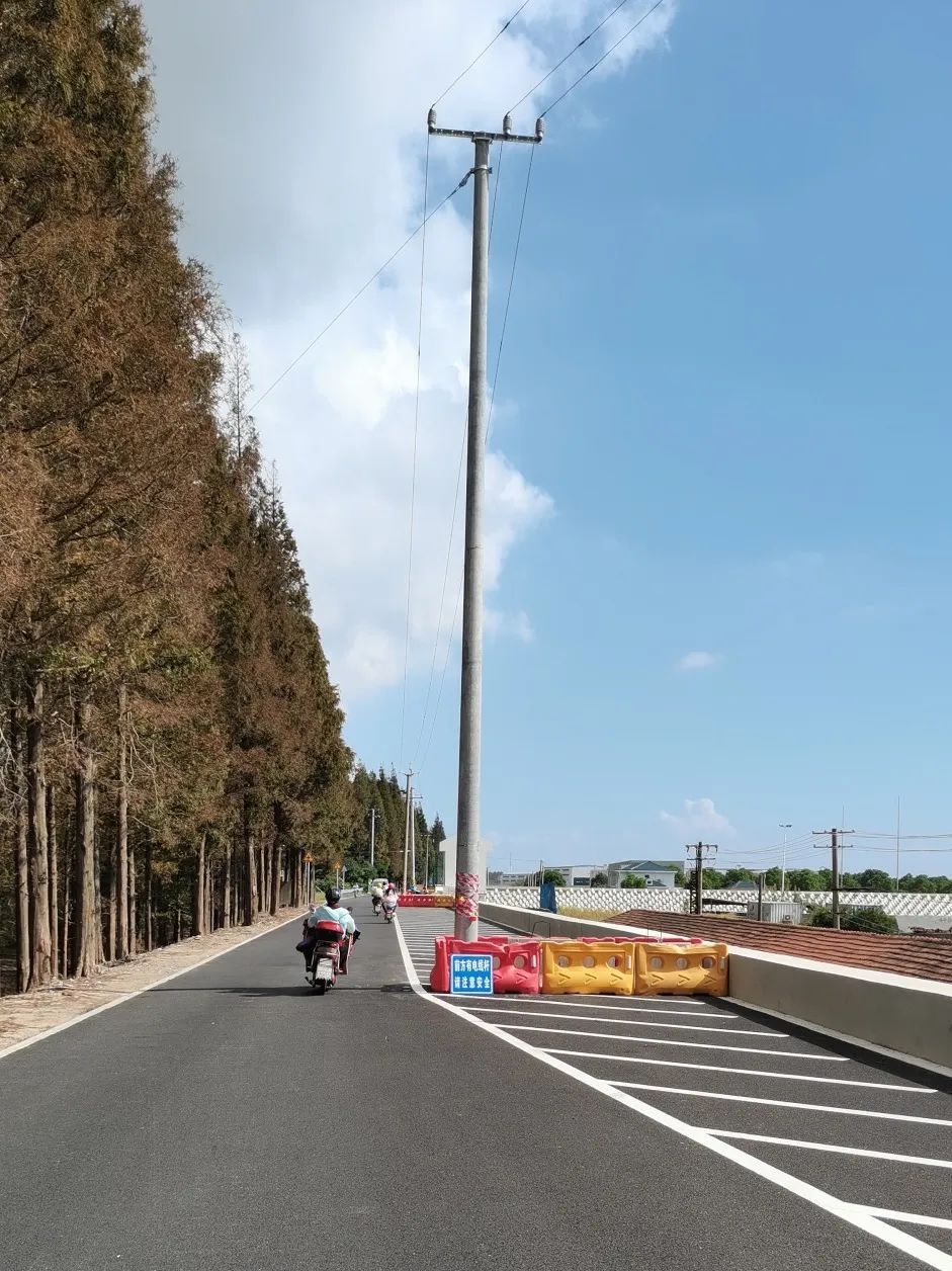 该路段北侧为林木,南侧为航环码头、长江,东、西侧为道路路口,最东侧水泥电线杆正位于路口会车点。同时,该路段离村民居住点、码头较近,附近村民常常选择该条道路前往城桥镇南门,往来车辆较多,水泥电线杆位于马路中间,存在较大安全隐患。