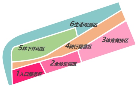 整个公园以“林巷律动,生态共享”为设计理念,打造绿色生态空间下的体育特色休憩绿地。公园整体上形成了入口服务区、全龄乐园区、体育竞技区、骑行露营区、林下休闲区、生态观测区六大分区。