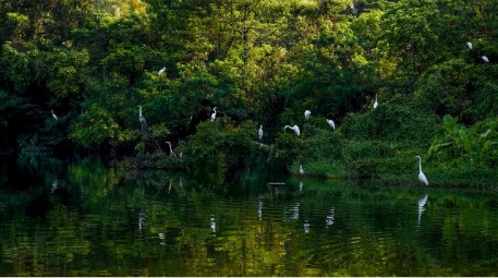 对园内现状植被及水域进行改造提升,维持碳氧平衡,营造适宜鸟类、无尾两栖类及昆虫等生物栖息的多样化生境,保护生物多样性。