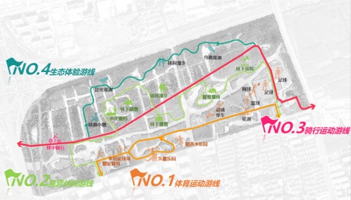 结合园内绿道串联起各运动休闲活动场地,形成了4条公园游览线路,增强公园的整体游览性,一起来看看吧!
