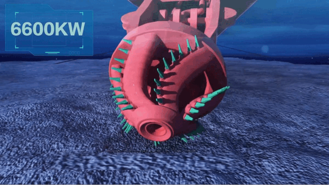 天鲲号的“铜头”就是直径3.15米的巨型绞刀,攻克岩石的原理其实并不复杂,大家日常使用的电钻,功率越高的电钻能在钻击时产生更大的力,因而就能对付更坚硬的物体。结合南海的地质情况,天鲲号配备了6600KW的超大功率绞刀,这个功率就相当于3000多台混凝土电钻同时工作。