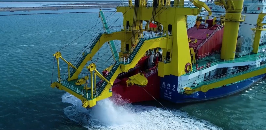 我国首艘自主设计研发、亚洲最大的自航式绞吸挖泥船——天鲲号,运用铜头铁臂大长腿,原来耗时30年填充的25万平方米的人工岛,天鲲号只用两周就能完成。