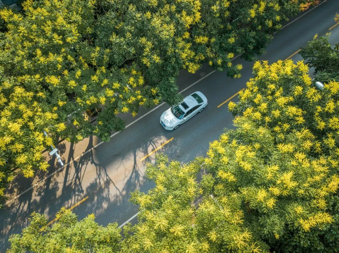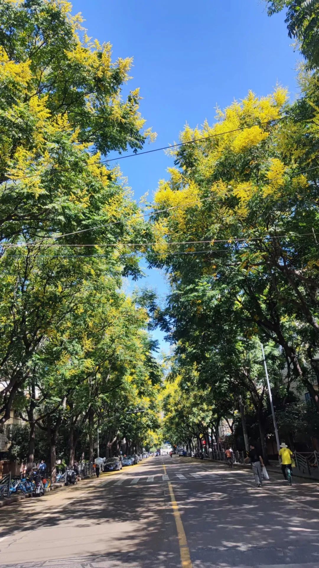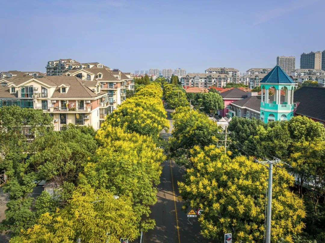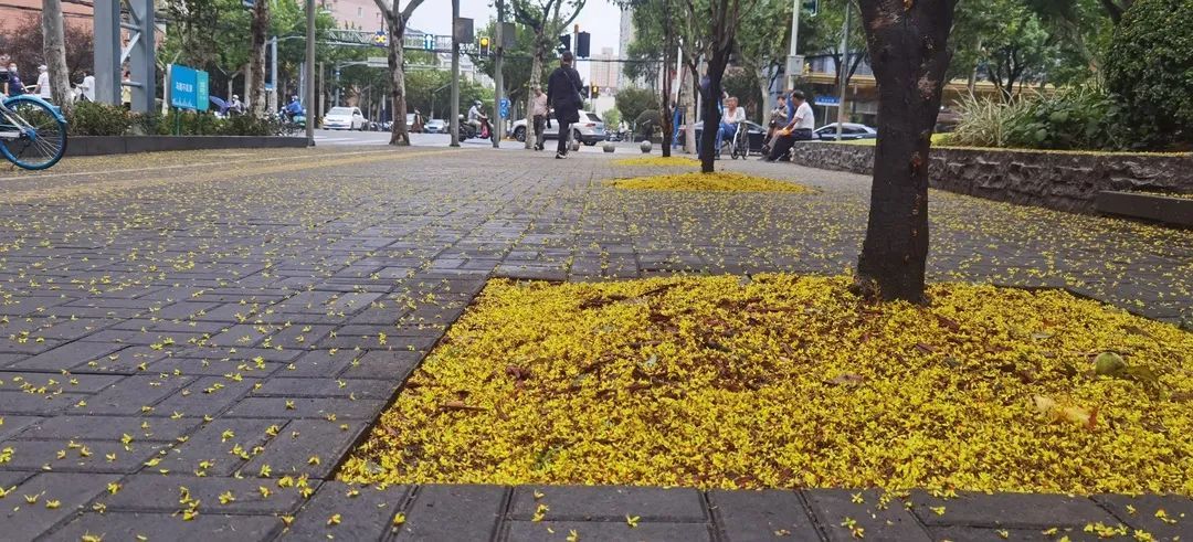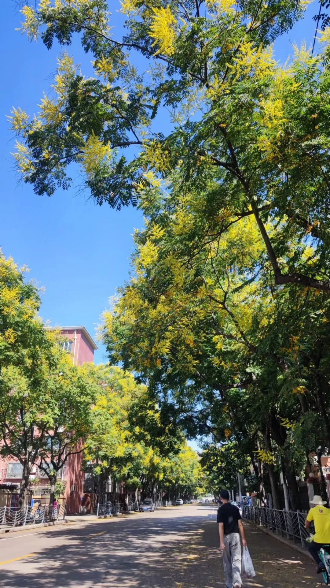 秋日申城街头的色彩如同油画般,集翠绿、金黄于一身。目前,在申城部分公园和部分道路上的栾树已进入了花期,微风吹过,下起阵阵“黄金雨”。