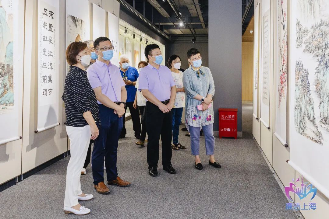 黄浦区外滩街道举办党风廉政书画展,共征集到各类作品200余幅。图为该区党员干部现场参观书画展。(黄浦区纪委监委供 潘雁 摄)
