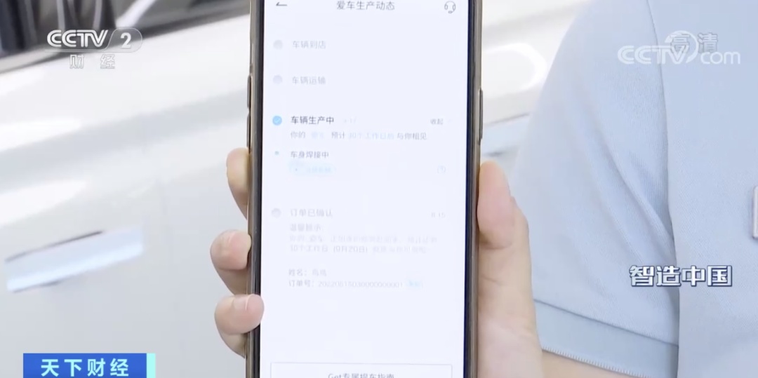 记者定制了一款喜欢的车。同一款车,不仅是车身,连轮胎和内饰也能个性化定制。在等车的时间里,可以通过手机APP在云端实时了解车的生产过程。