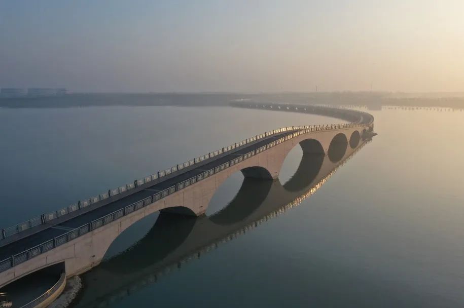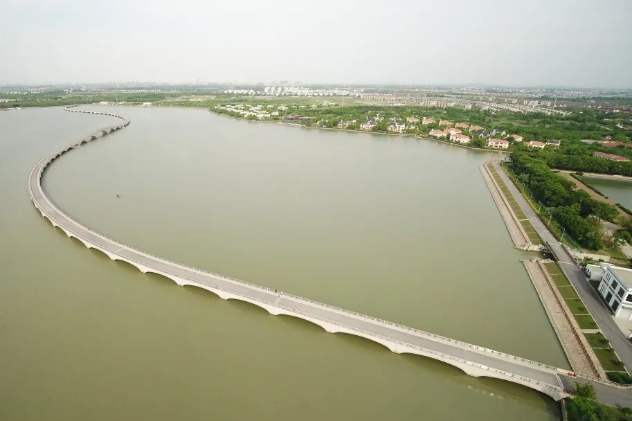 打造水景观。“彩虹桥”全长1.47公里,桥梁线型优美,蜿蜒似彩蝶,共64跨,主跨汲取朱家角放生桥古典石拱桥元素,采用5跨连拱型式,传承了古桥韵味,是目前长三角地区最长的人行拱桥,吸引了大批游客前往参观游览,参观人数最高达4万/天,成为极具人气的网红打卡地。