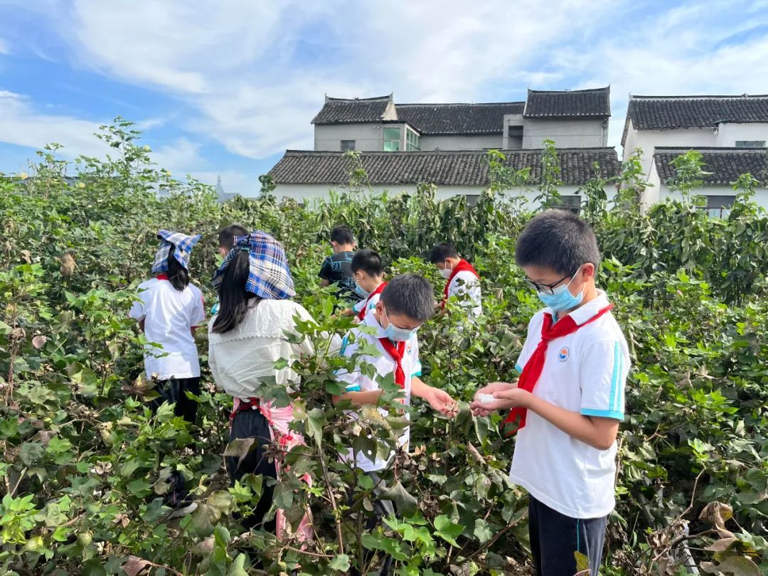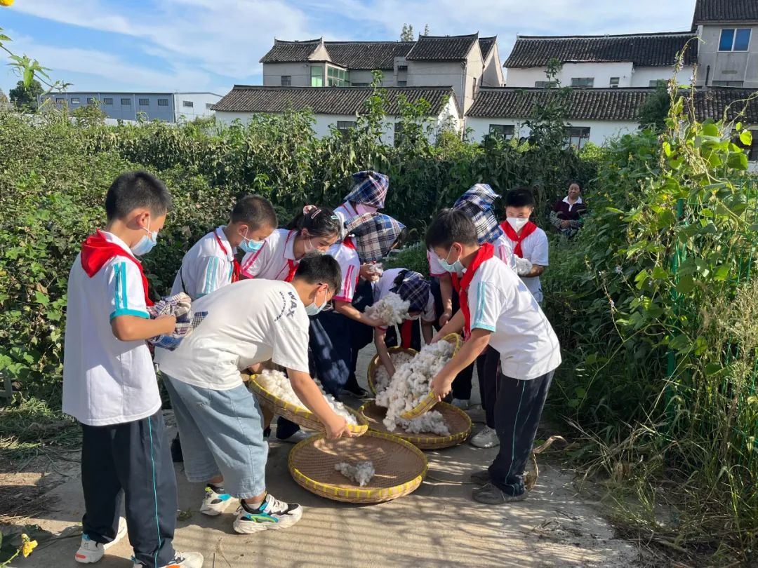 “从一粒种子到我们身上穿的衣服、用的各种东西,都能让学生感受到自然的‘馈赠’与丰收的喜悦。”奉贤区庄行学校校长仇苗苗介绍,“等孩子们收了棉花以后,学校已经准备好要把棉花进行纺纱,然后进行印染,再是织布,最后我们会做成各种土布作品。”