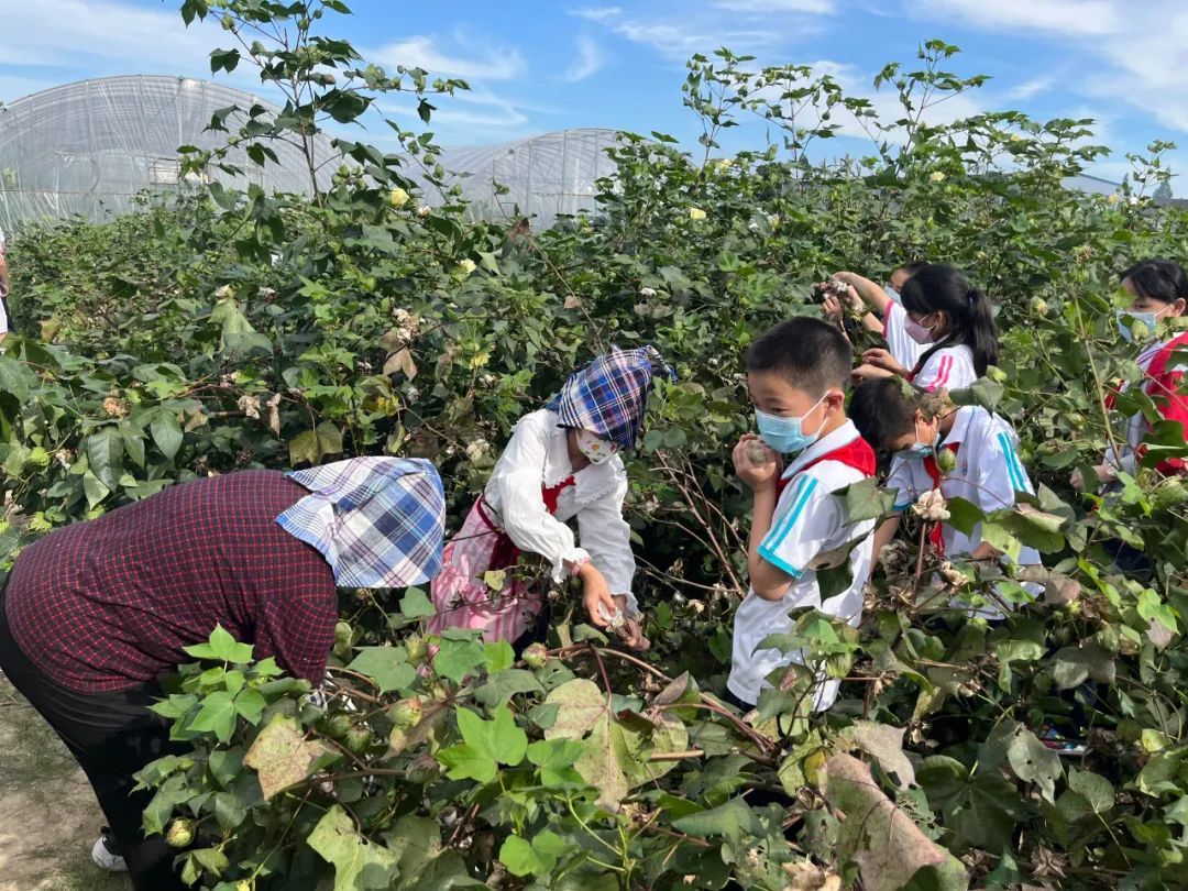 “一开始采棉花的时候,我以为是直接把花骨朵摘下来,奶奶特别着急。”学生聂可馨是第一次来学校的实践基地,冒冒失失的她被紧急纠错。“其实要保留花在枝头,从棉花壳上,把棉花一瓣一瓣摘下来。”