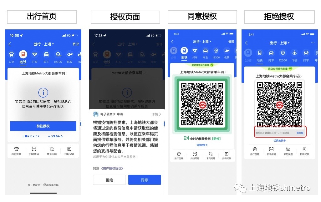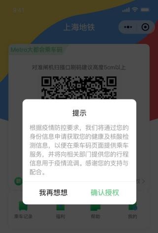 (2)上海地铁“Metro大都会”乘车码授权健康信息