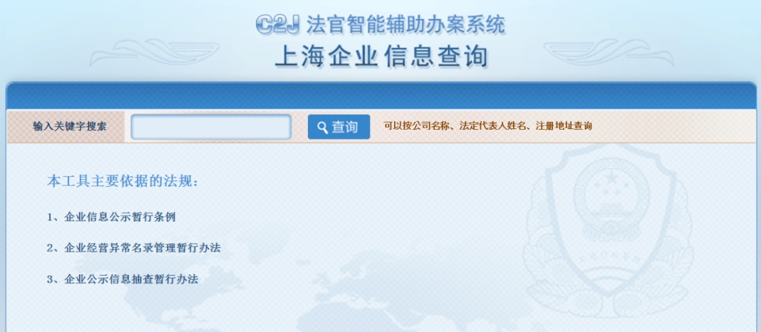“C2J法官办案智能辅助系统”中的“上海企业信息查询”功能可以查询到企业的注册地址及通讯地址,该通讯地址往往是企业的经营地。