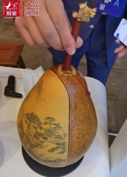 “温婉儒雅”沉淀在一只文玩葫芦里。9月26日至28日,2022中国(曲阜)国际孔子文化节、第八届尼山世界文明论坛举行,尼山大学堂里一只文玩葫芦吸引了记者们的眼光,据参展方介绍,这只文玩葫芦历经2000天养成,价格不菲,可以卖到三到五万元。