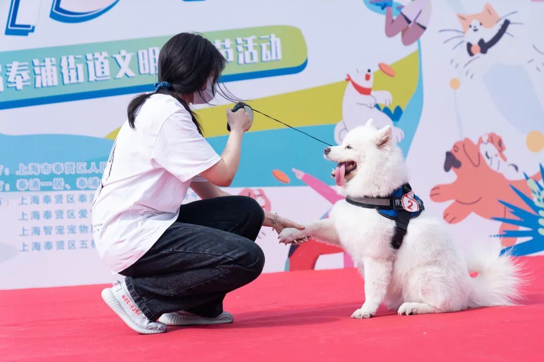 奉浦居民带着自家萌宠,上台分享文明养宠乐趣和体验。小可爱们还为大家展示了自己的各项特技。