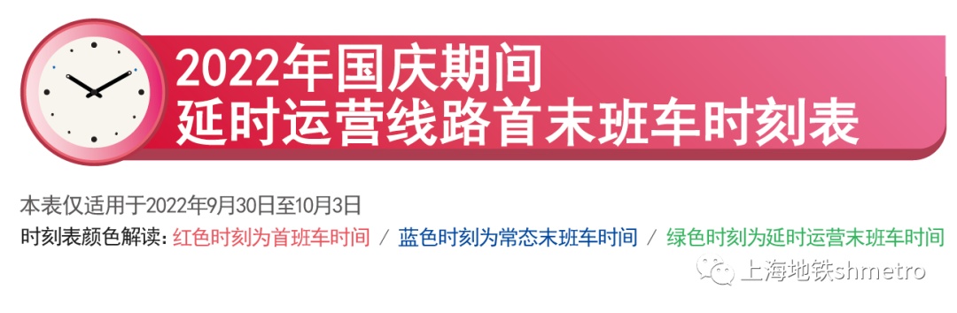2、国庆长假期间相关计划运营信息以现场实际为准,更多实时信息请查看上海地铁新浪官方微博“上海地铁shmetro”,上海地铁官方微信订阅号,或拨打网络服务监督热线64370000电话查询。