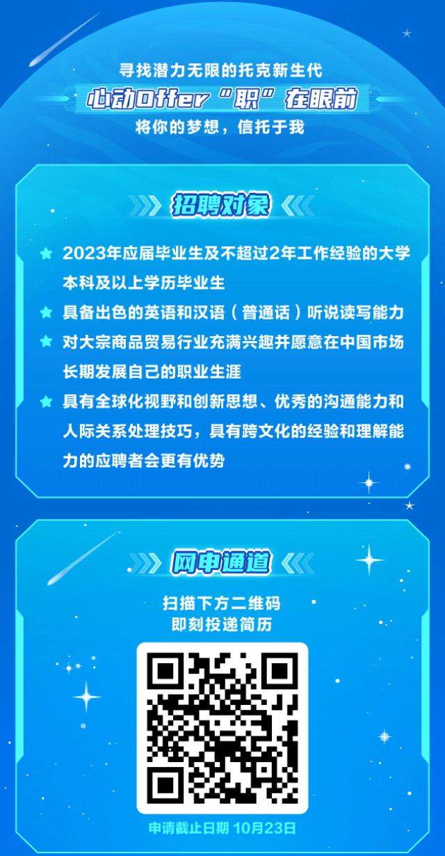 【招聘】托克中国2023交易员培训生校园招聘