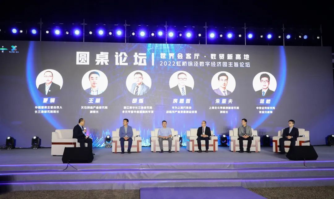 在数字贸易圆桌论坛环节,华略智库主管合伙人、首席研究员、长三角研究院院长夏骥,与华为、上海北斗导航创新研究院、中泰证券研究所、火石创造科技有限公司、浙江清华长三角研究院等单位的“大咖”展开头脑风暴,围绕数字经济如何开展产业链招商,推进补链、强链、延链、展链;青浦未来发展数字贸易、数字经济如何布局;虹桥国际中央商务区如何打造数字贸易新高地;华为将如何加快数字经济发展,助推长三角数字干线建设;北斗将如何做好“深化应用”“融合创新”“升级服务”三篇大文章;科技金融如何支持数字经济的发展等话题,展开了精彩纷呈的“思想碰撞”,通过“点题、解题、破题”,诸多新观点和愿景展望让与会者“提神醒脑”。