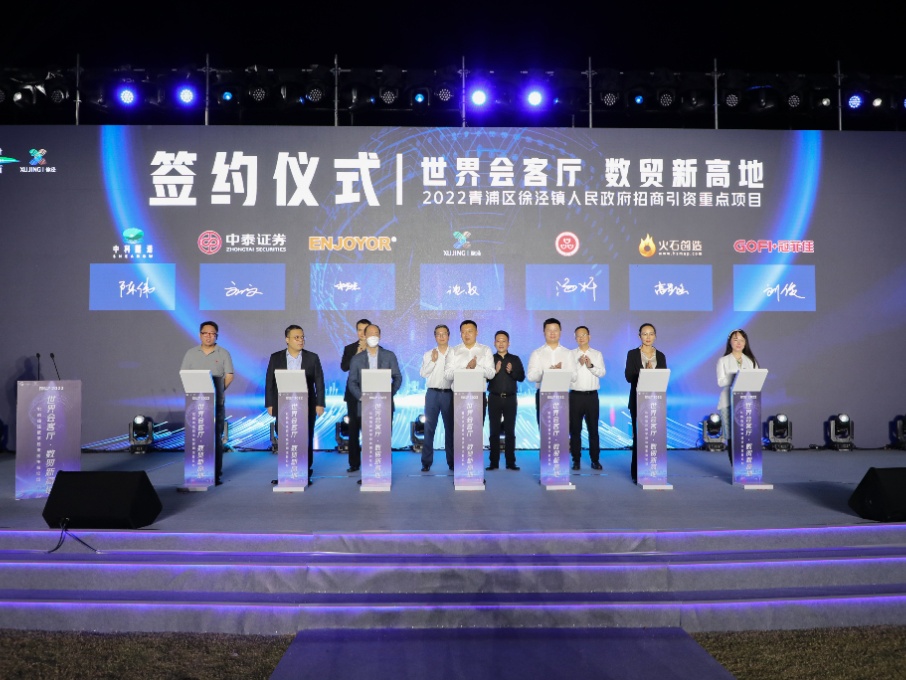 现场,中建五局华东建设有限公司、福建盼盼食品有限公司、诺亚机器人科技(上海)有限公司、银江技术股份有限公司、上海品誉企业发展集团有限公司、中泰证券股份有限公司上海分公司、杭州火石创造科技有限公司等12家企业与徐泾镇签订战略合作协议;虹桥华商会与上海虹泾投资管理集团有限公司就建立战略合作伙伴关系签约。