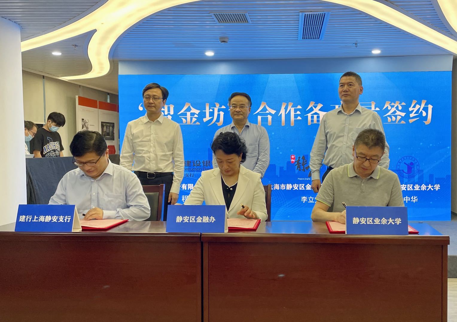 活动上,静安区金融服务办公室、上海市静安区业余大学、中国建设银行上海静安支行签署了《关于共同建设“智金坊”项目的合作备忘录》,并正式启动2022年静安区金融巡讲进社区活动。