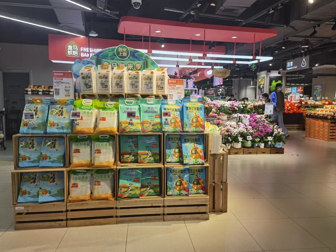 在徐汇区盒马保利时光里店,入口位置特别设置了今年新米的专属柜台。上海的松江大米占据显眼位置,日期新鲜,包装也特别打上了“只卖当季粮”的标签。盒马App和鱼米之乡的线上渠道也已经上新,喜欢吃新米的市民可以选购了。