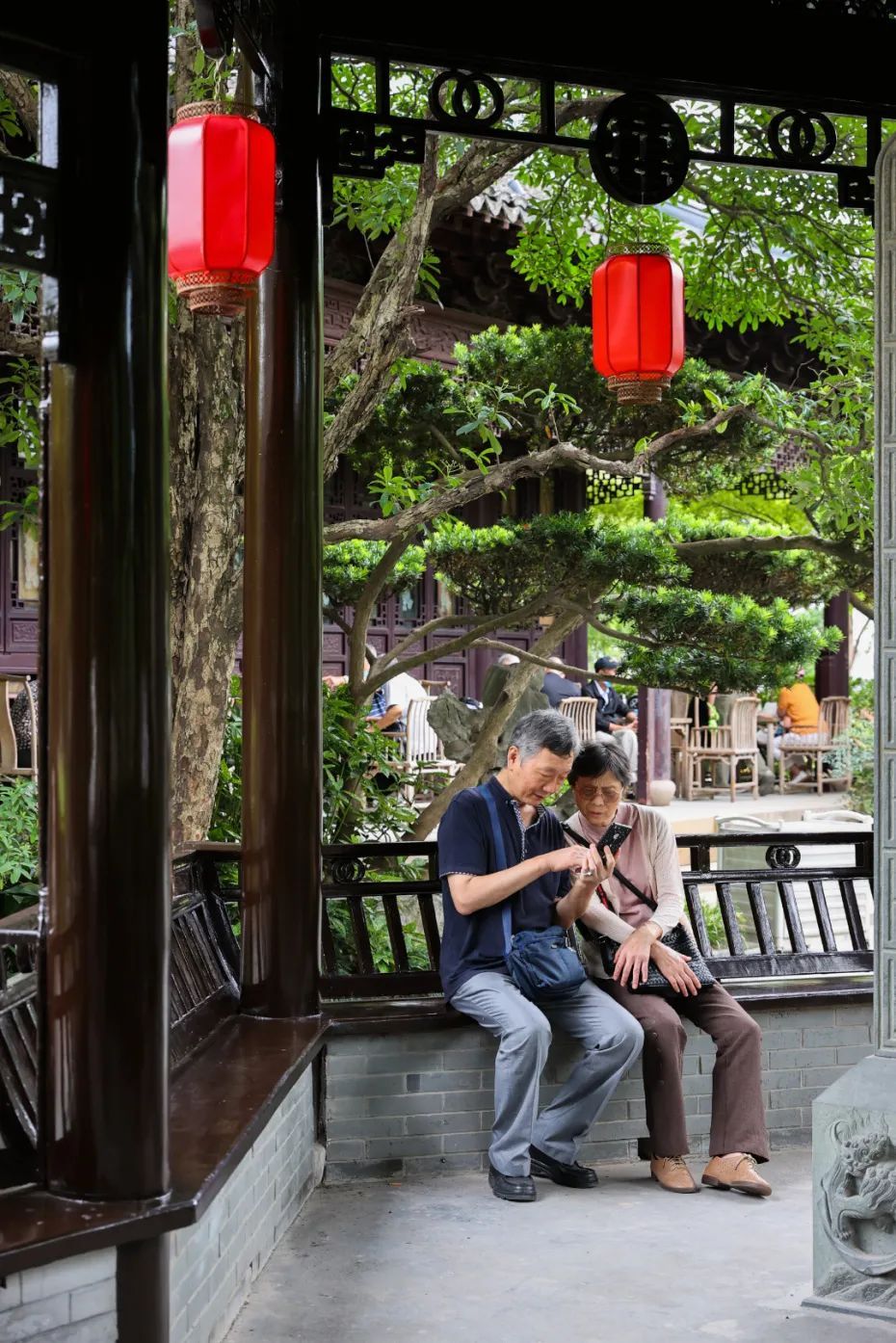 公园内建筑古色古香,林荫曲径通幽,尤其是亭廊阁宇极具特色,是一座独具江南古典园林气质的四星级公园。在园中,最能表现出其江南古典园林特征的,除了有四教厅、八仙台、鸳鸯楼、观音阁、般若舫、飞香厅这些建筑体景点,还有丰富多彩各具亮点的18座中式亭。此次修缮工程秉持“不改变建筑原貌”的设计理念,不改变现存建筑的结构、外貌、装饰、色彩,恢复建筑原来面貌,对已损坏的构件进行修复,并对现状建筑尽可能地合理使用,因地制宜,提高建筑利用功效。