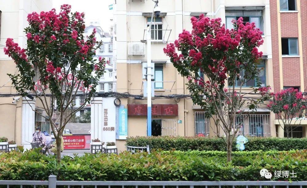 因为上海其特殊的地理环境,国庆期间开花的木本植物较少。为了给重要节日增色添彩,上海市绿化管理指导站与相关养护单位,研发出花期精准调控技术,让紫薇‘天鹅绒’按时绽放,有效保障了国庆期间高品质花卉景观。